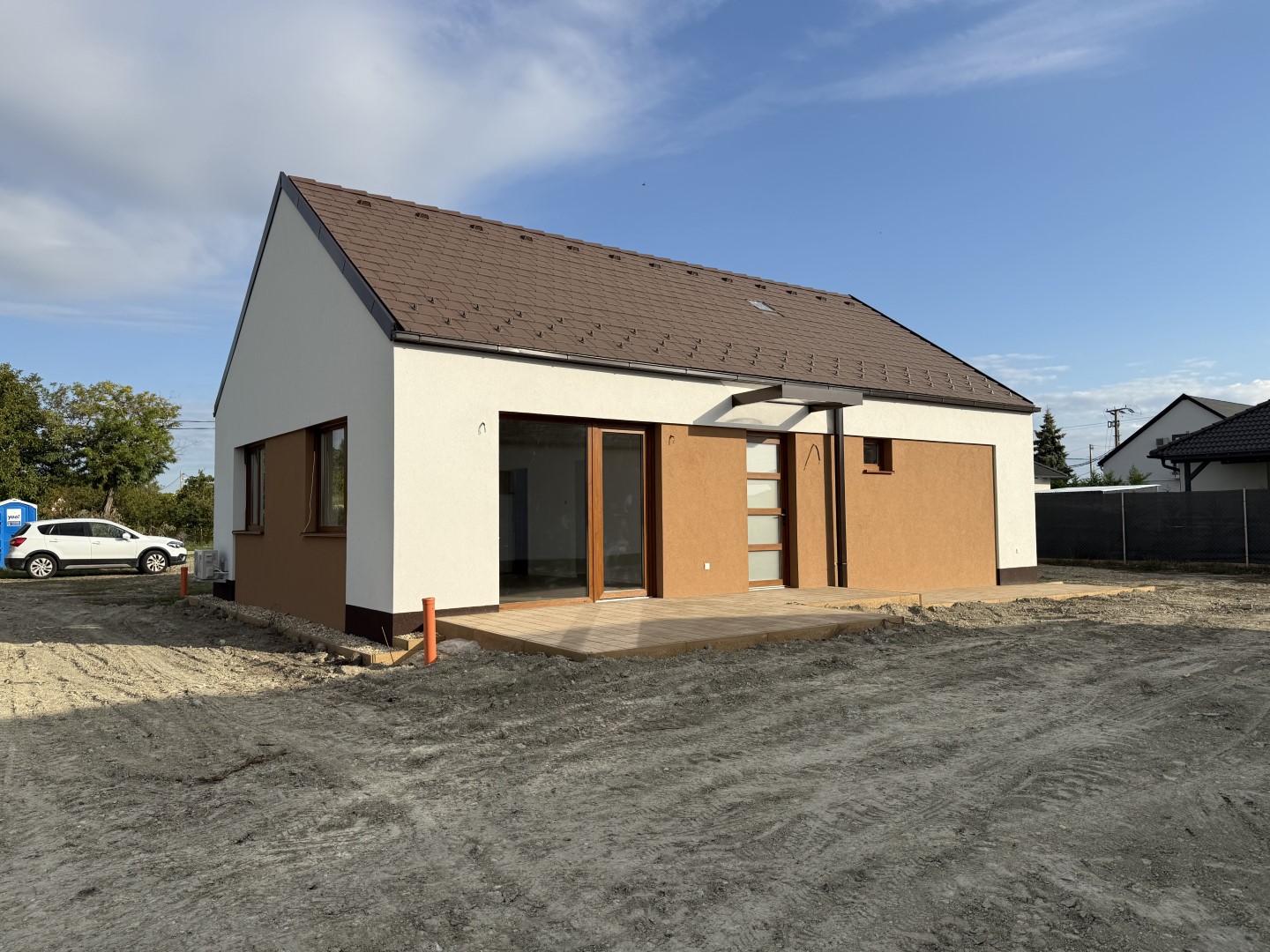 A ház tágas, világos, minőségi anyagokból készült.A ház szerkezete Porotherm tégla kívülről 20 cm szigeteléssel nemesvakolattal. A födém külső borítás cseréppel (BRAMAC)készül alatta a megfelelő vastagságú fóliázattal.