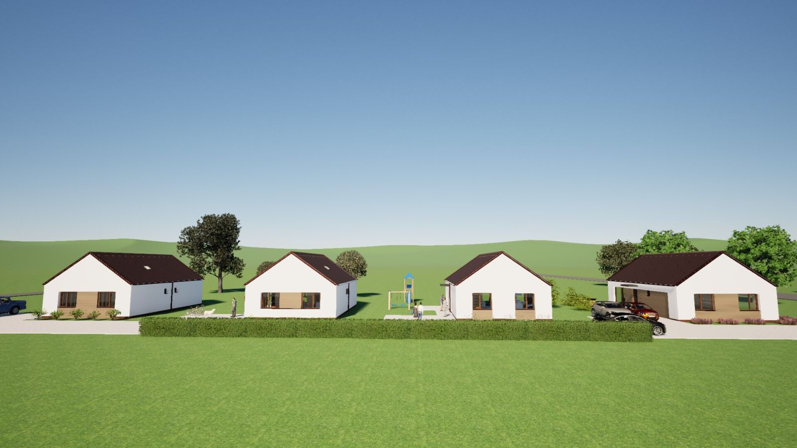 - a kulcsrakész kivitelezésen felül, a telkeket elválasztó kerítést 3 oldalról, 1 db klímát, térkövezett teraszt és járdát, H-tarifa bekötést ( kivétel az óra) , locsolómérős vízórát