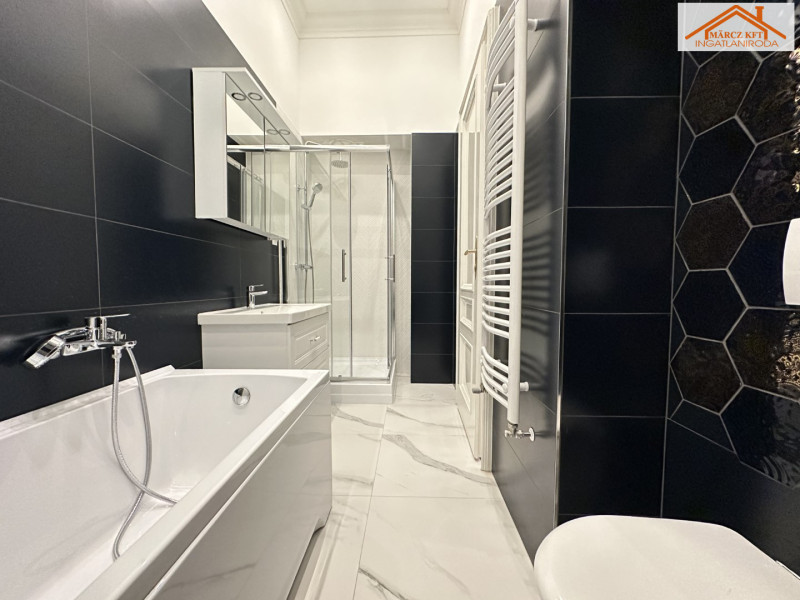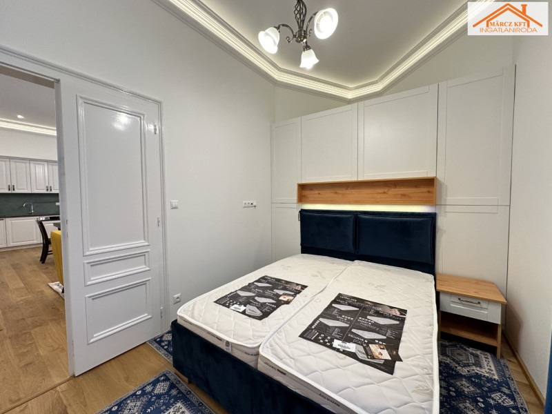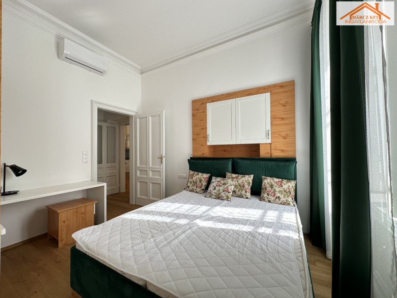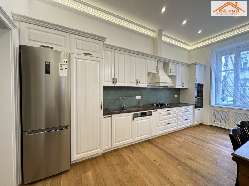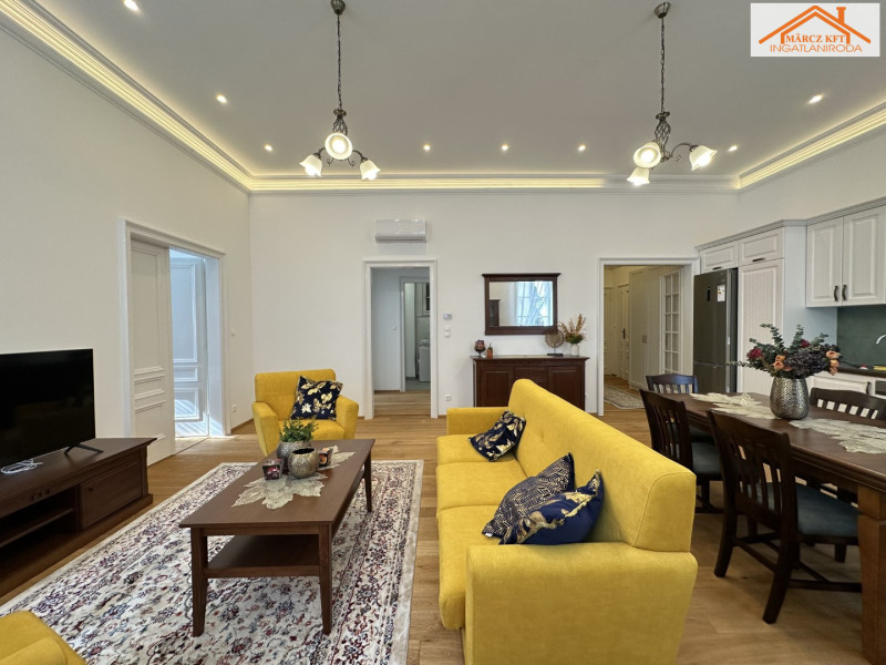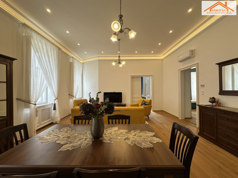 BL-003992 Történelmi Belvárosban (Fő utcán), frekventált helyen, társasházban első emeleti, 90 nm-es, 2 szobás + konyha-étkezős, tégla, exkluzívan felújított, belső építész által tervezett, gázkazán + radiátor fűtésű, tágas terekkel rendelkező lakás hosszútávra kiadó.