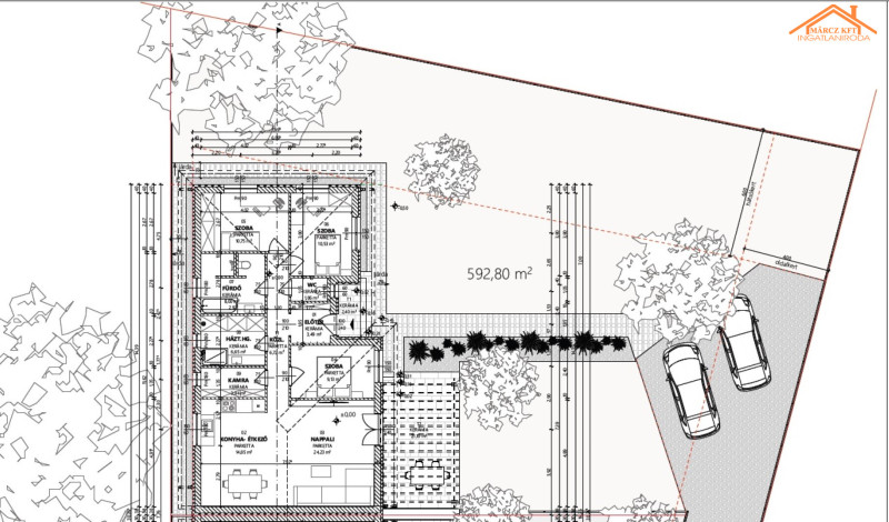 ● 593 m2 önálló telekterület