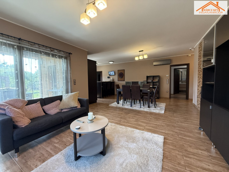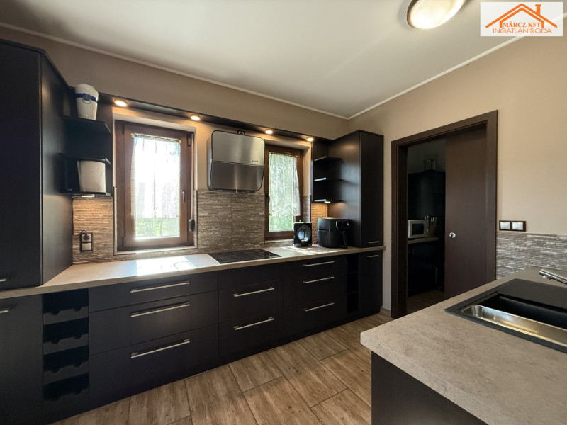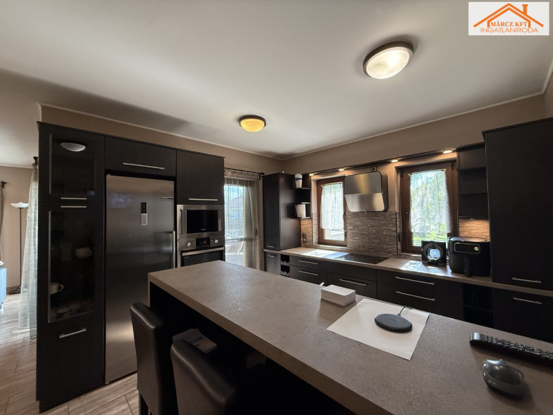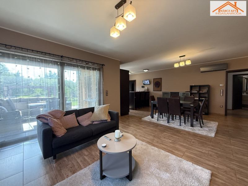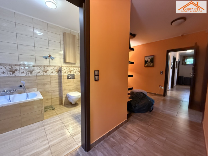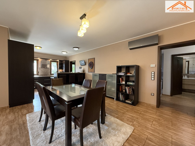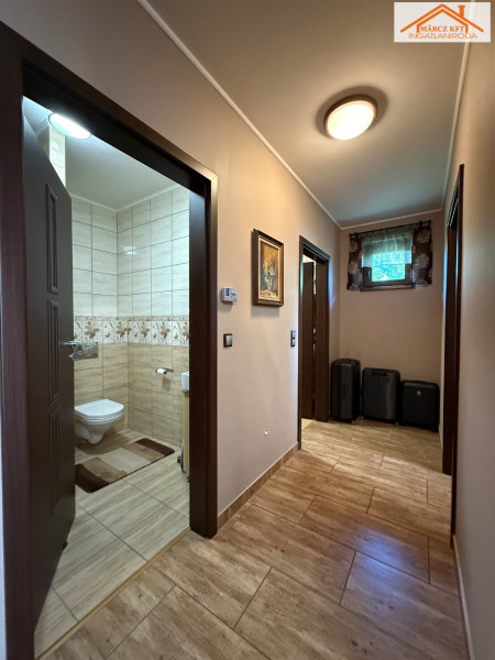 - előszoba, tágas nappali konyha-étkező kamra, 4 szoba, 3 fürdőszoba +wc-vel bidével, nagy(39m2) részben fedett terasz, és 5,5m2 első terasz, mosókonyha, gépészei helyiség