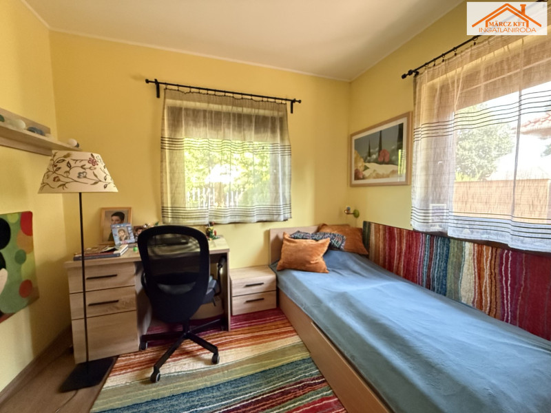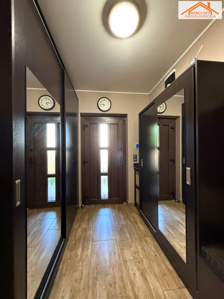 A ház tágas, világos, körbe napozott, minőségi anyagokból készült. A burkolatokat tekintve a szobákban magas minőségű laminált padló, a nappaliban a közlekedőben, valamint a konyhában és a vizes helyiségekben jó minőségű járólap található. A nyílászárók műanyagból készültek, 3 rétegű hőszigetelt üvegezéssel, rajtuk elektromos redőny és szúnyogháló található.