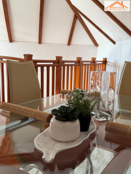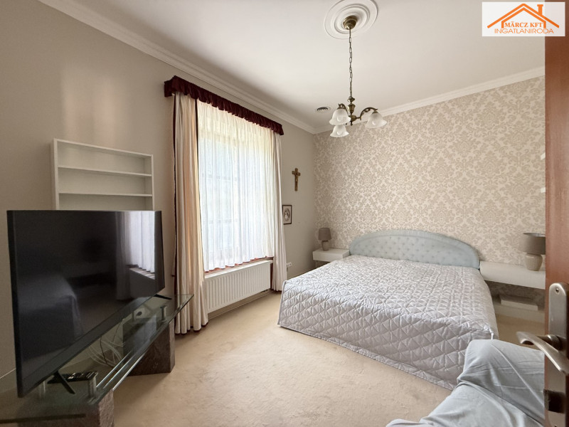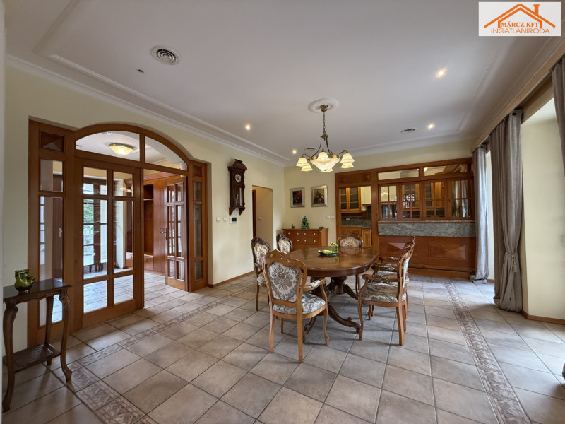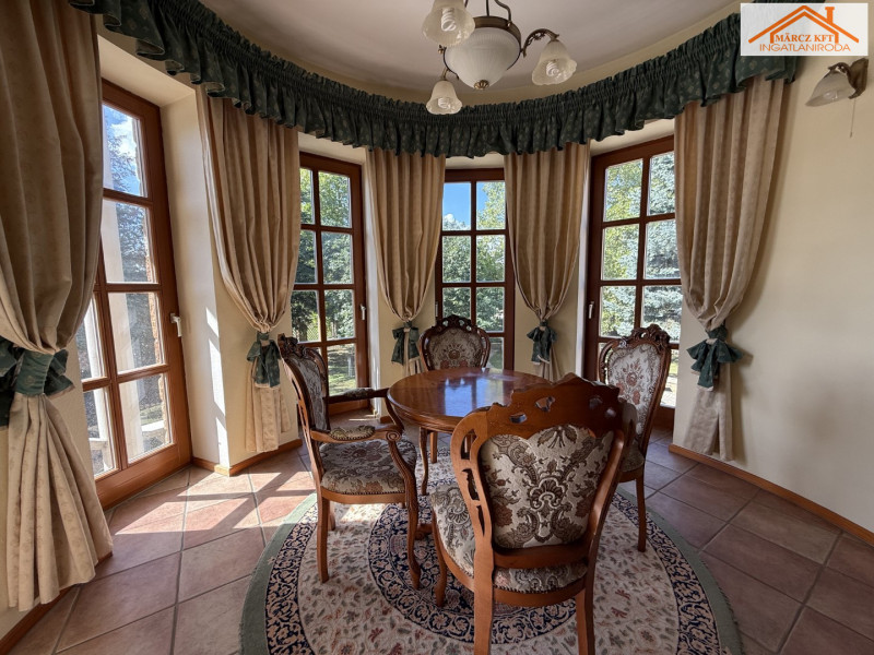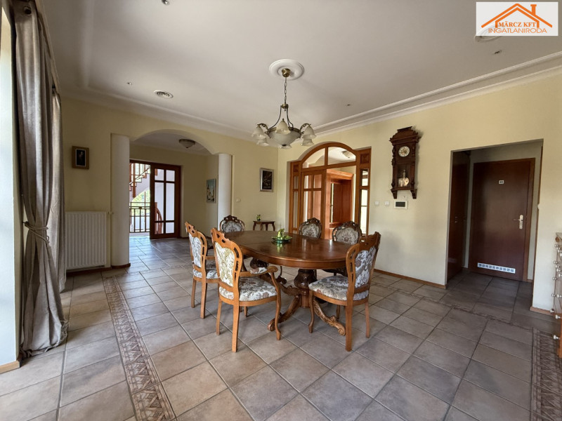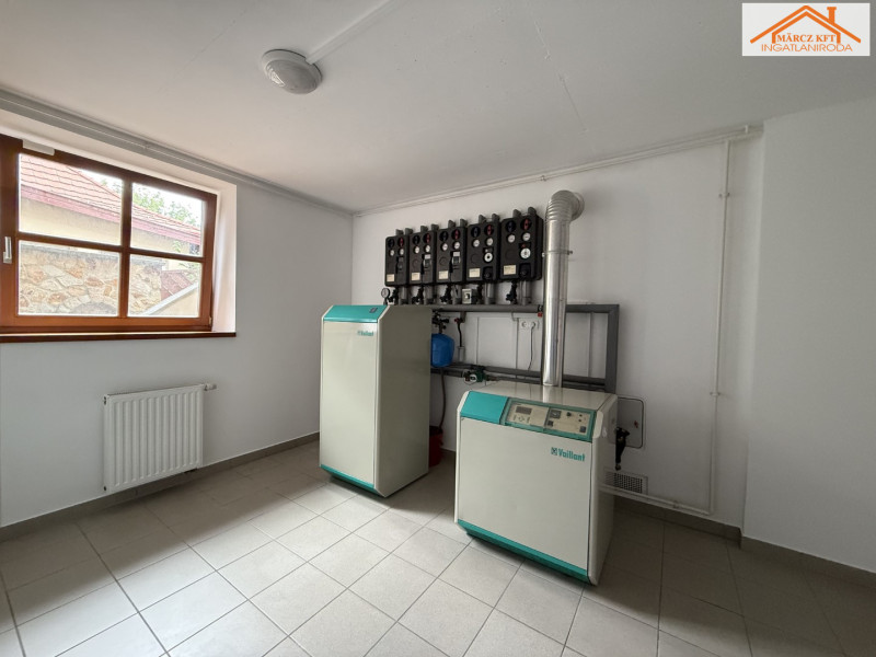 Az 2400 m2-es területen elhelyezkedő ingatlan 2002-ben épült, Porotherm 44 téglából, 8-12cm kőburkolattal, illetve hőszigeteléssel. Fűtése gázkazán, padló és radiátoros hőleadással. Nagy teljesítményű klímarendszerrel. Vastag falaknak köszönhetően a rezsiköltsége alacsony.