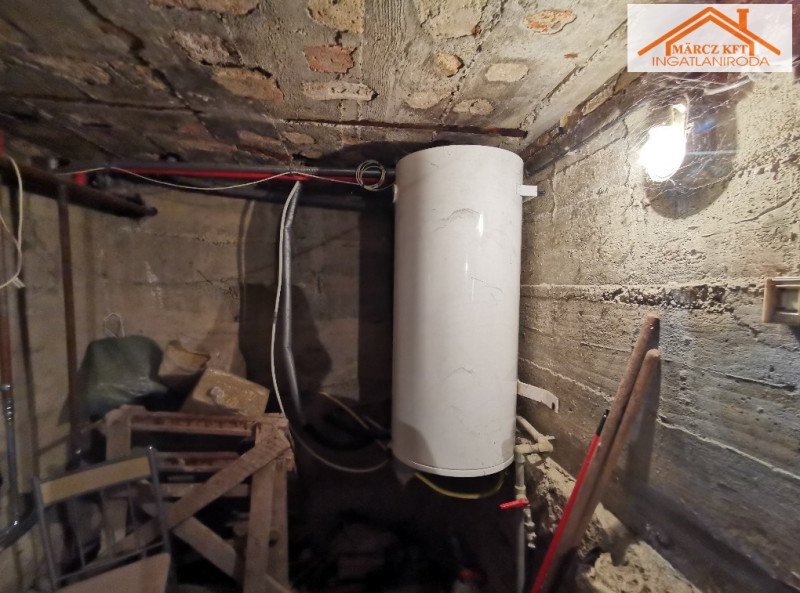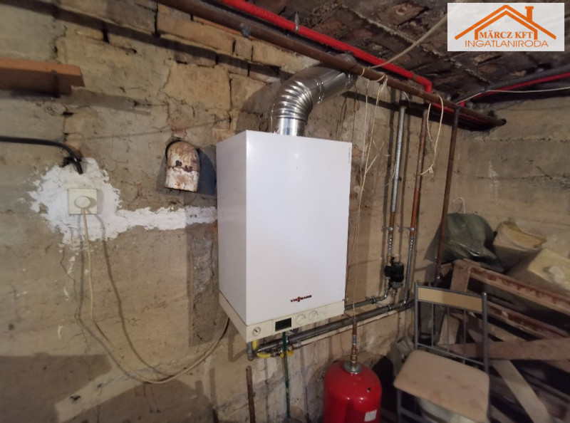 A ház teljesen alá van pincézve, zöldséges pince, tároló, fatároló és egy kb. 20 nm-es leválasztott helyiségben kapott helyet a gázkazán, ami jelenleg a ház fűtését biztosítja radiátoros hőleadással. A melegvíz ellátás villanybojlerrel történik.