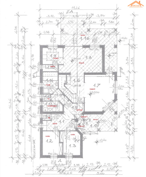 • Szobák száma: Tágas nappali, konyha-étkező (52 m²), 5 hálószoba (10 m²-13 m²)