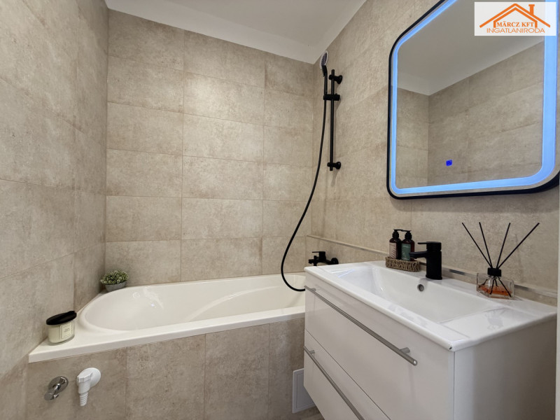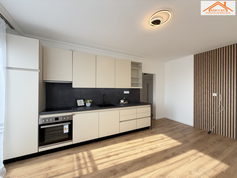 Az átalakítást követően, a konyha átkerült a nappaliba, így, 2 db külön nyíló szoba került kialakításra. A lakásban az összes burkolat cseréje megtörtént. A beltéri ajtók is újak, modern letisztultak. A fürdő is teljesen megújult, RAVAK kád került beépítésre.