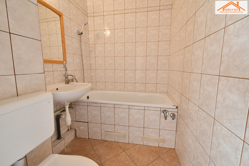 A kádas fürdő és a wc egy helyiségben található. Az ablakok újak, műanyag hőszigeteltek, az épület kívülről szigetelt.