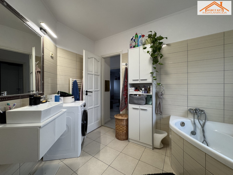 Az ingatlan 2008-ban épült Ytong falazattal és gipszkarton válaszfalakkal. Nyílászárói 2 rétegű üvegezésűek, részben redőnnyel és szúnyoghálóval felszereltek. Hideg-meleg burkolatjai jó állapotúak. A fűtést kombi gázkazán biztosítja radiátoros hőleadással, vizes helyiségekben padlófűtés is kialakításra került. Mindkét szinten split klíma gondoskodik a kellemes hőérzetről. Villanyhálózat 1x32A.