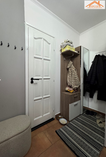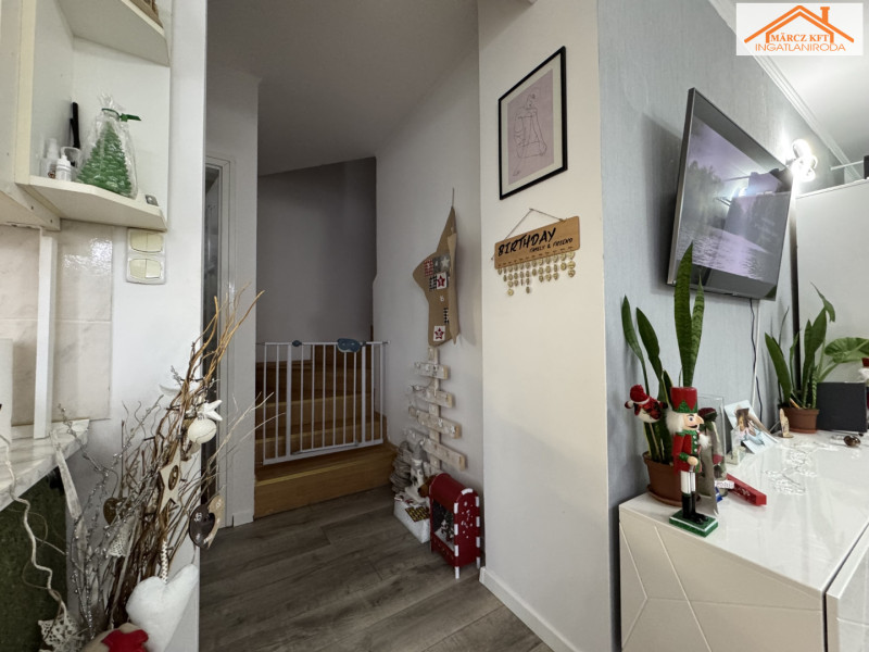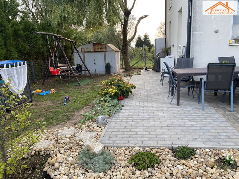 A telekterület 420m2, teljesen önálló, körbekerített és füvesített, térkövezett része alkalmas autóbeállónak.