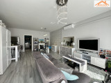 Az 50 m²-es amerikai konyhás nappali a lakás központi tere – tágas, világos és elegáns.