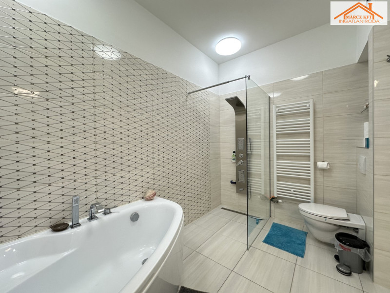 A lakás dupla komfortos, 3 hálószobával, külön mosókonyhával, vendégmosdóval, valamint exkluzív fürdőszobával: sarokkád, walk-in zuhanyzó, dupla mosdó, WC.