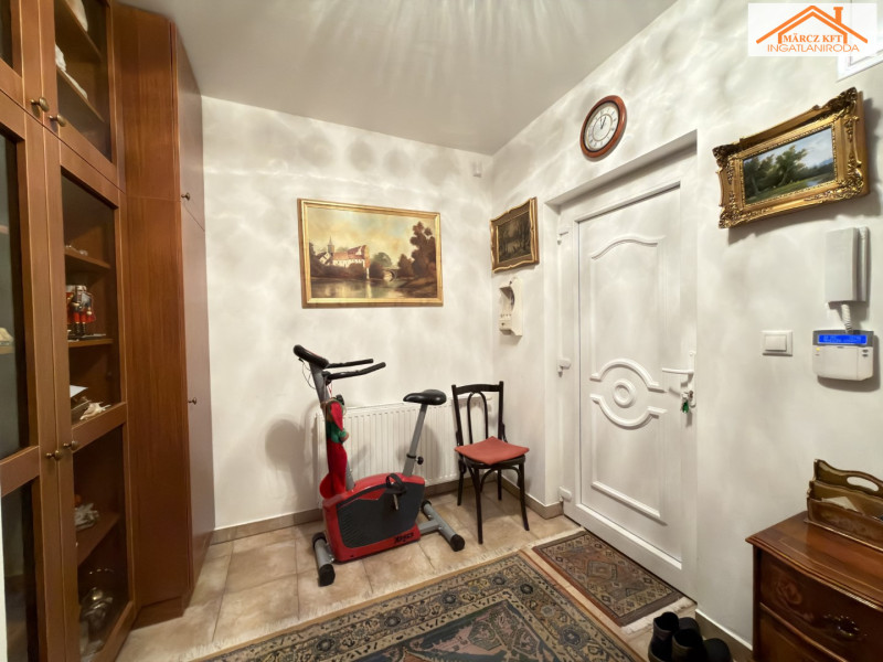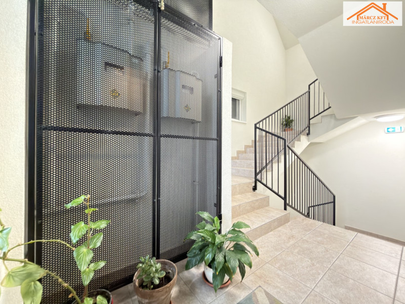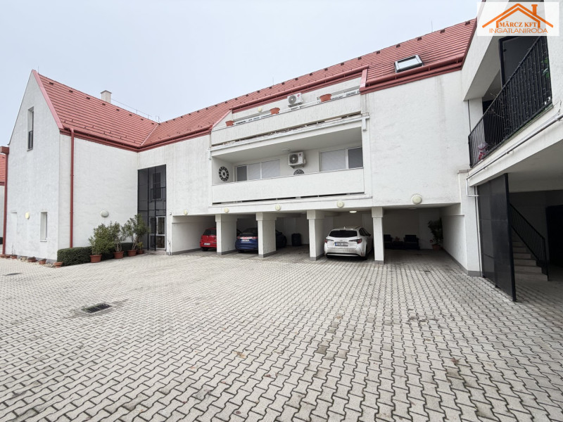 Az eladási ár része egy 16 m²-es fedett gépkocsibeálló, valamint az ahhoz tartozó 4,38 m²-es saját tároló. A társasház térkövezett belső kocsibehajtóval rendelkezik, továbbá a hátsó, zárt udvarban egy további autó számára is biztosított a parkolás.