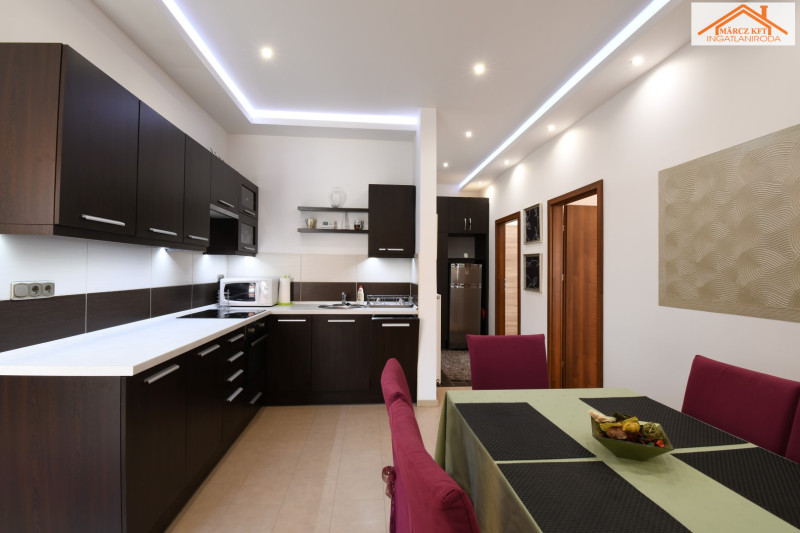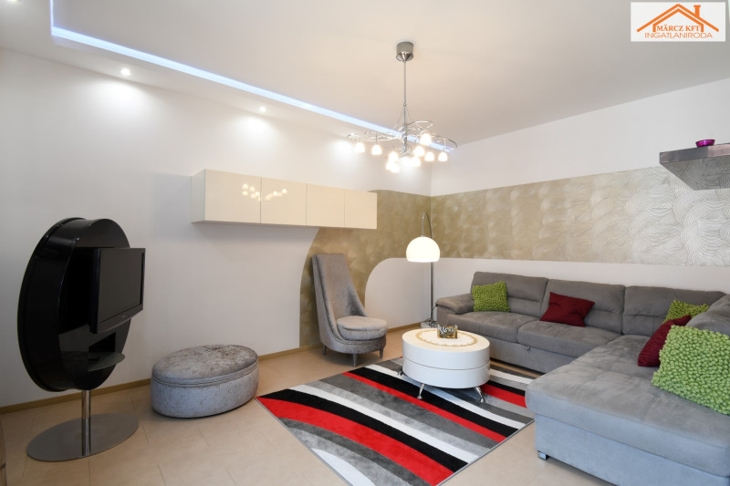 ízléses, modern bútorzattal berendezett, kiváló állapotú. Az új, hőszigetelt műanyag nyílászárók szúnyoghálós redőnnyel felszereltek, így a komfort és az energiatakarékosság is adott.