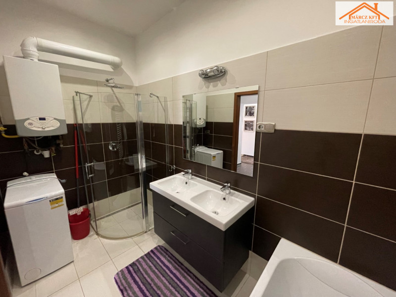 A fűtést és a melegvíz-ellátást kombi kondenzációs kazán biztosítja, a hőleadás új radiátorokon keresztül történik. A fürdőszobában kád és zuhanykabin is helyet kapott, így a praktikum és a kényelem egyaránt érvényesül.