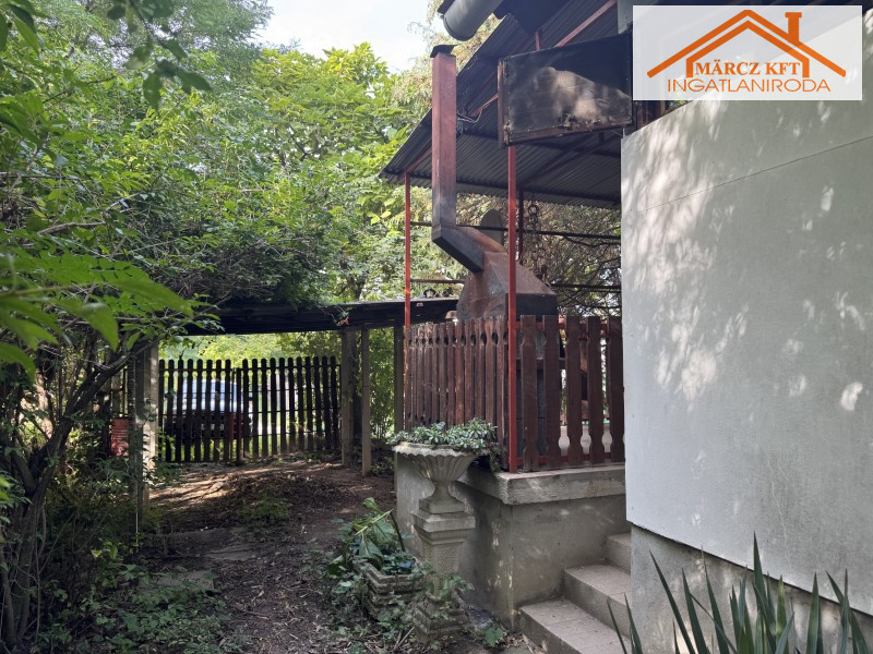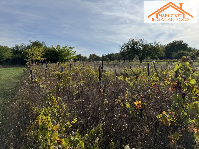 A telek 1430m2, egy része fákkal beültetett, hátsó részében szőlős található.